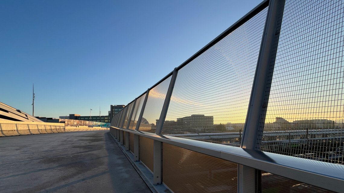 Pour ce projet d’infrastructure architecturale, la maille métallique a été retenue comme solution de remplissage de garde-corps, alliant sécurité, transparence et légèreté visuelle.