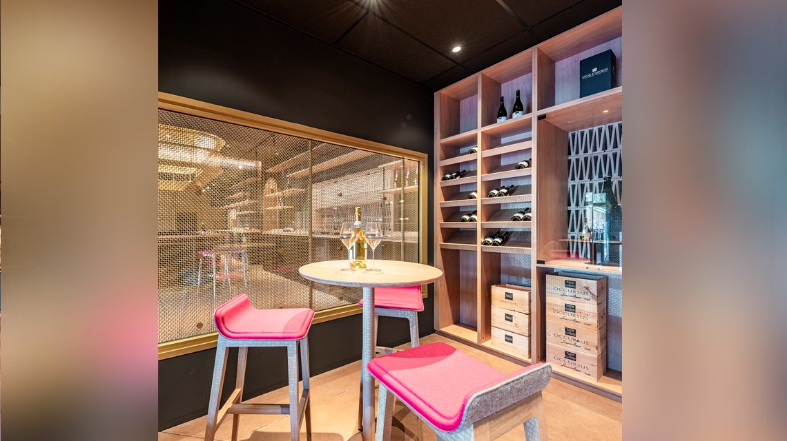 À Limoux, la coopérative Sieur d’Arques transforme son espace de dégustation en un lieu immersif dédié à ses vins de prestige, dont la cuvée emblématique « Première Bulle ».