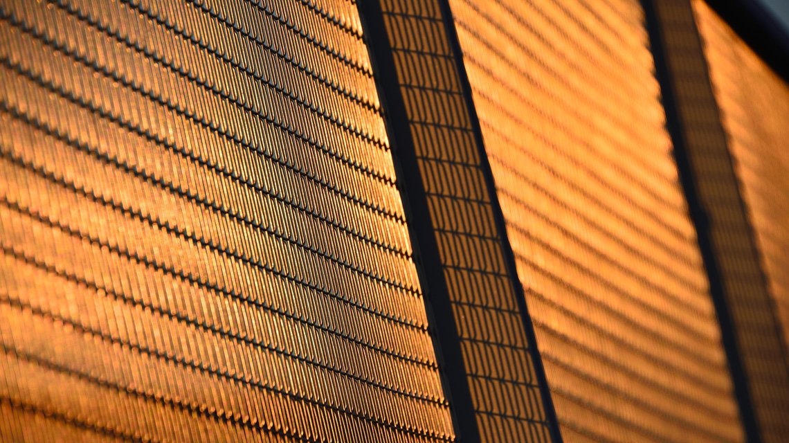 Dans cette réalisation, la maille accompagne la ligne de la passerelle comme un voile architectural continu, révélant toute sa finesse lorsque la lumière naturelle glisse le long du garde-corps.