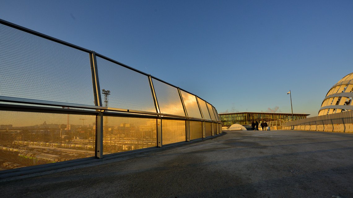 Pour ce projet d’infrastructure architecturale, la maille métallique a été retenue comme solution de remplissage de garde-corps, alliant sécurité, transparence et légèreté visuelle.
