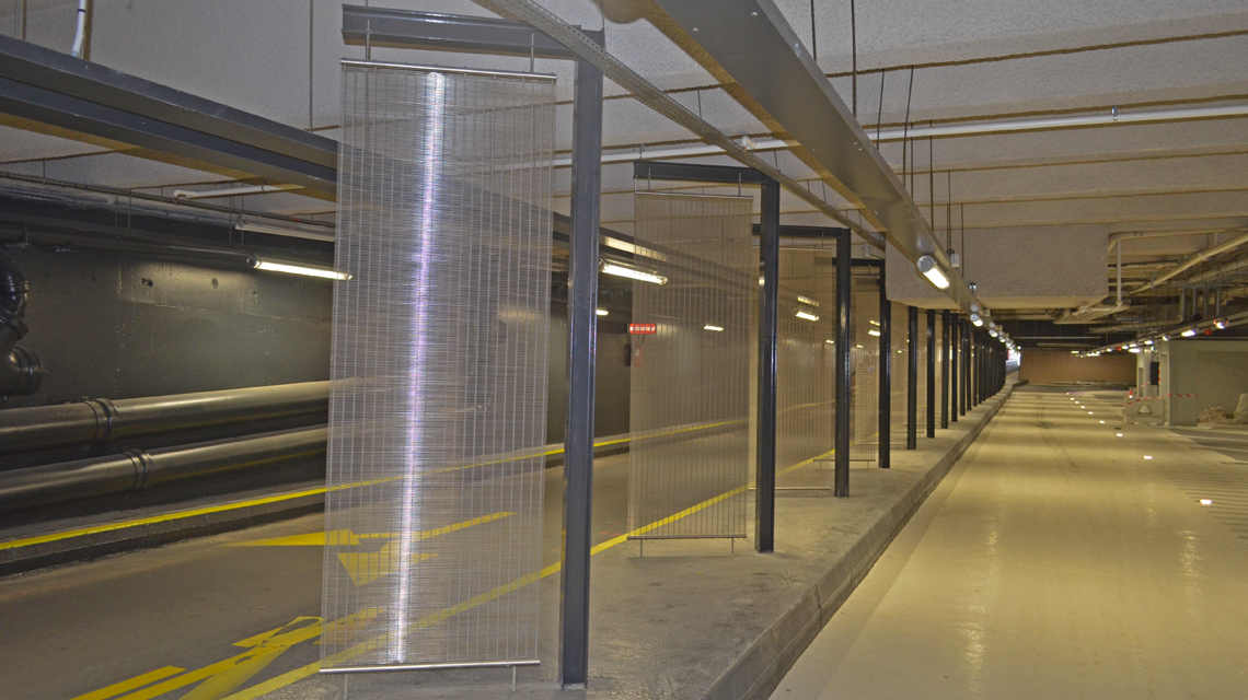 Dans le cadre de la conception de nouveau parking, l’agence d’architecture a choisi la maille métallique AALTO comme paravents séparateurs, marquant ainsi la distinction entre les voies de circulation.