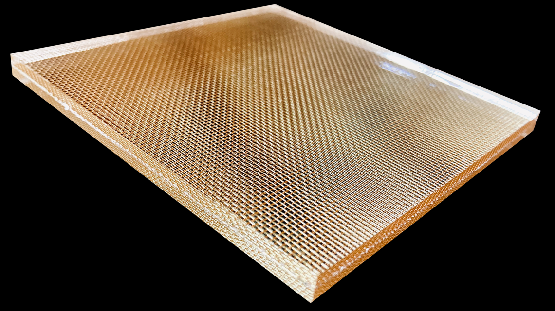 Stratification du tissu métallique dans 2 feuilles de plexiglass.