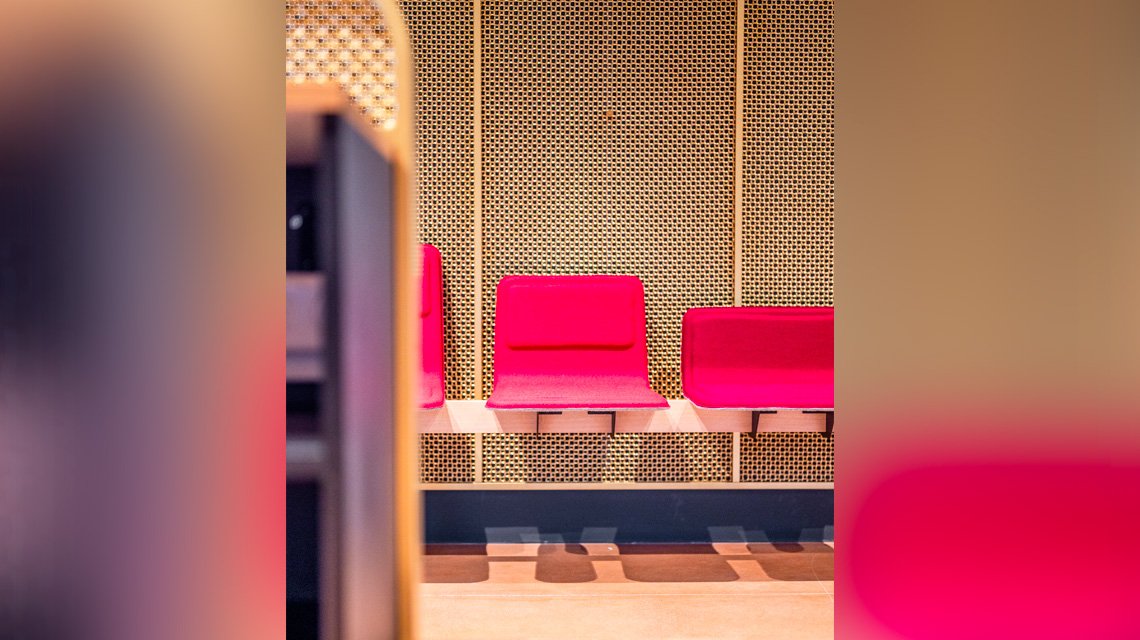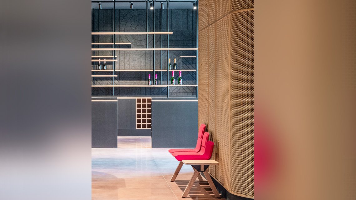 Ce traitement mural structure les espaces, accompagne le parcours de dégustation et renforce l’identité architecturale du lieu avec élégance et cohérence.